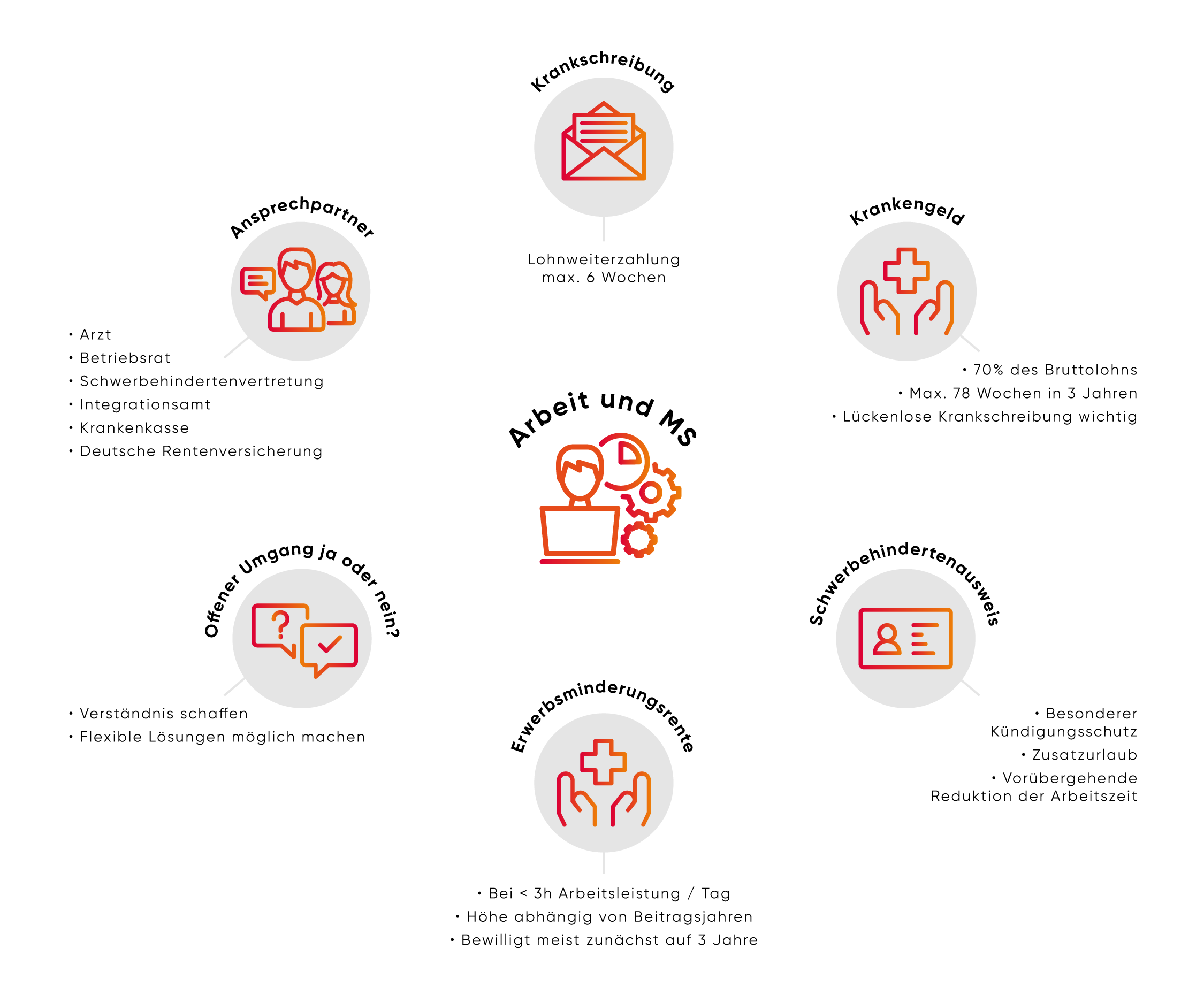 Wie immer gilt: Bei Fragen zur MS ist Dein Arzt Ansprechpartner Nummer 1. Das trifft auch zu, wenn es z. B. um Krankschreibungen geht. Zu allgemeinen Arbeitsthemen hast Du aber verschiedene weitere Anlaufstationen.