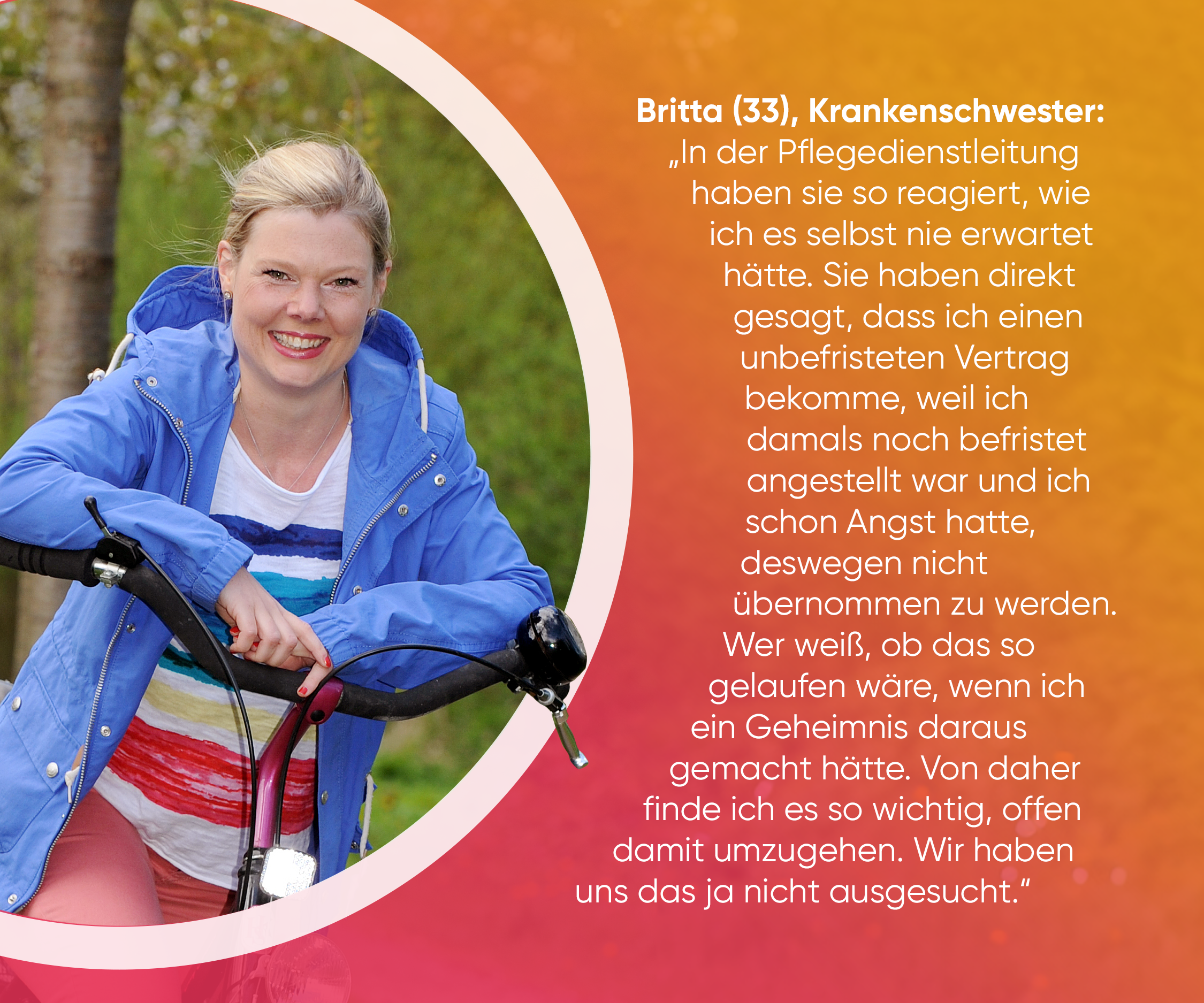 Das beginnt beim Verständnis der Kollegen, solltest Du einmal länger ausfallen, endet dort aber nicht. Flexible Lösungen wie Homeoffice, angepasste Arbeitszeiten oder Veränderung der Aufgabenfelder? All das funktioniert nur, wenn Du Dein berufliches Umfeld für Deine Situation sensibilisierst. Dann finden sich oftmals Wege, die man selbst nicht für möglich gehalten hätte. Das zeigen auch die Erfahrungen, die Ihr mit uns in den Mutmachgeschichten teilt.